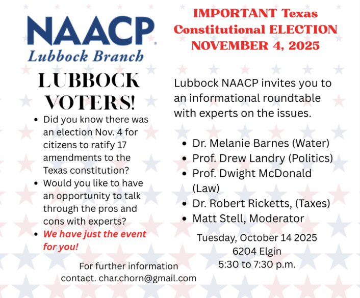 Lubbock NAACP invites you to an informational roundtable with experts on the issues.